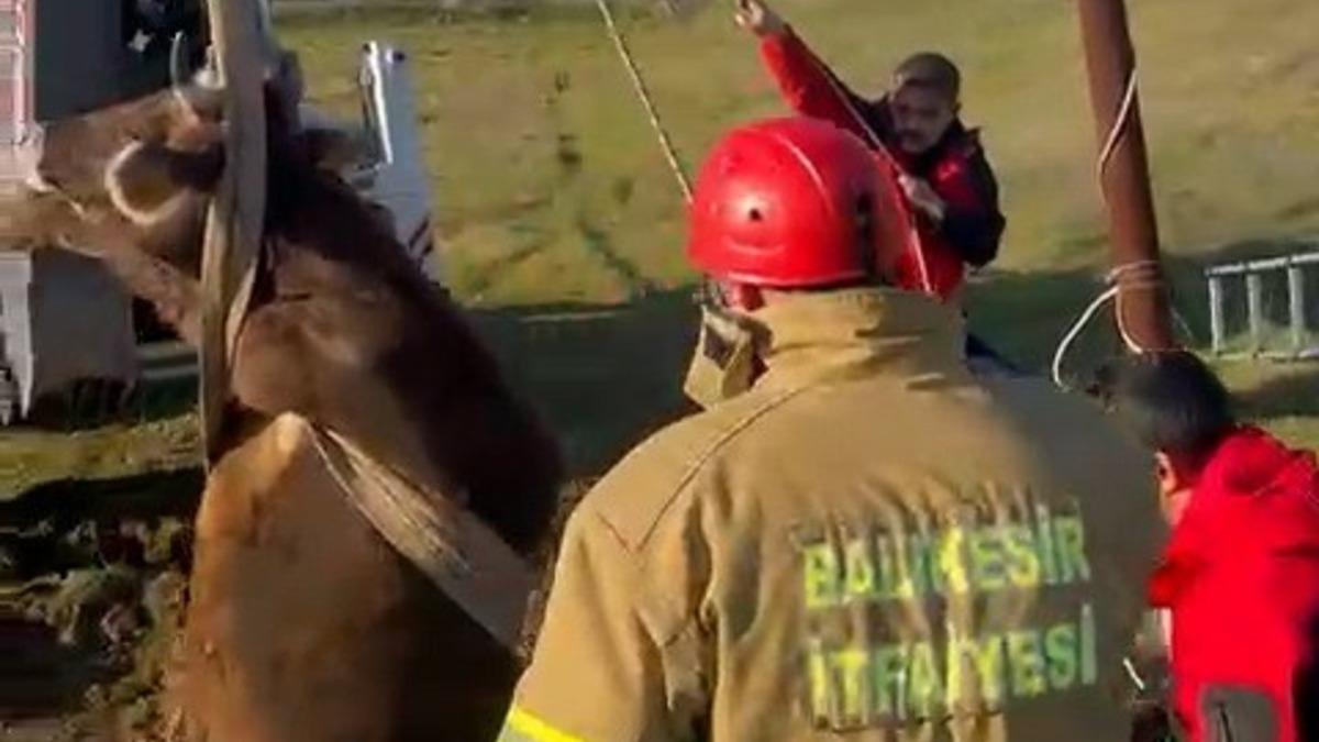 Olayı fark eden vatandaşların ihbarı üzerine Balıkesir Büyükşehir Belediyesi İtfaiye ekipleri ile Sındırgı Belediyesi ekipleri kısa sürede bölgeye ulaştı. Kuyuda mahsur kalan ineği kurtarmak için iş makinesi desteğiyle titiz bir çalışma yürütüldü.