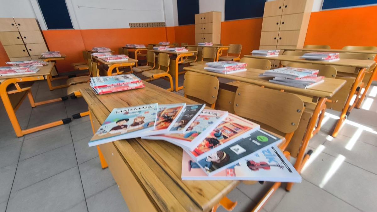 Eğitimde fırsat eşitliğini desteklemek ve tüm öğrencilerin nitelikli eğitime erişimini sağlamak amacıyla gönderilen kitaplar, okullarda öğrencilere dağıtılmak üzere sıralara bırakıldı.