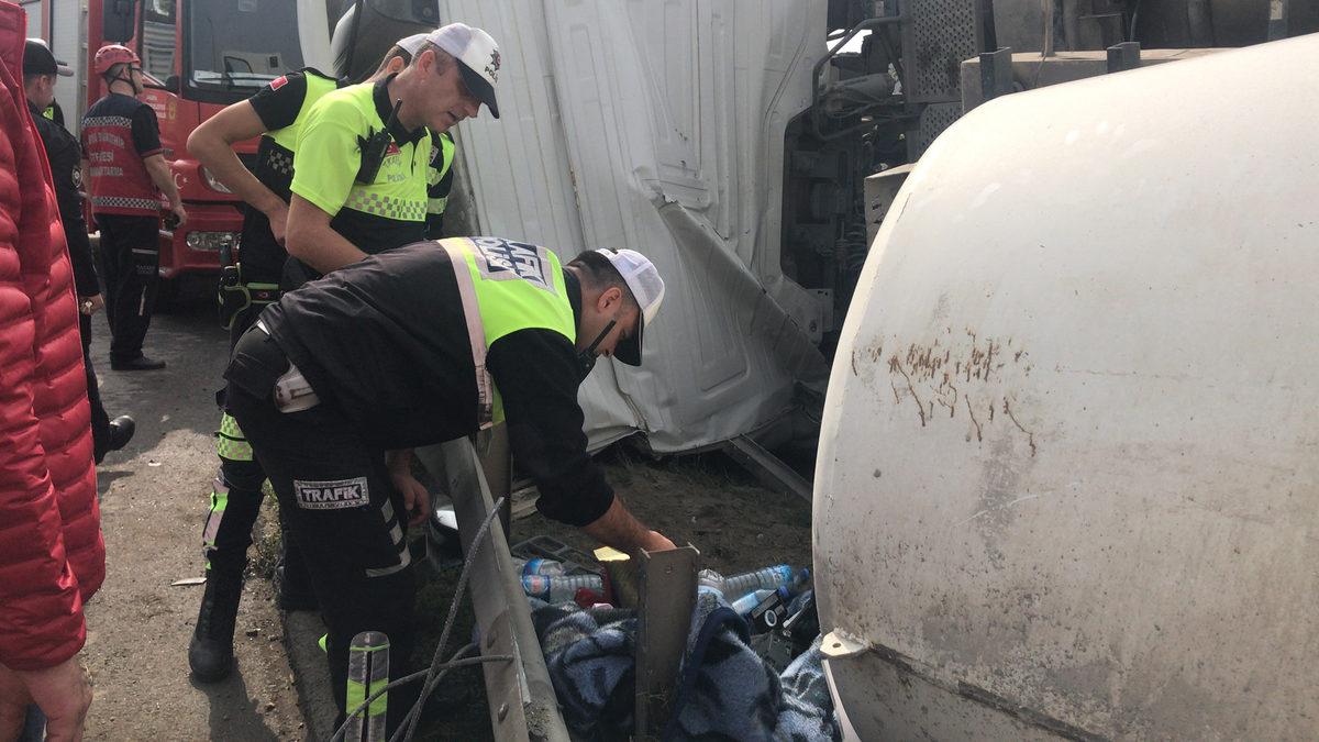 Aziz GÜVENER/ADAPAZARI (Sakarya), (DHA) - ADAPAZARI'da, kontrolden çıkıp, yol kenarındaki bariyerlere çarptıktan sonra devrilen beton mikserinin sürücüsü Ali Pekgöz (36), yaşamını yitirdi.