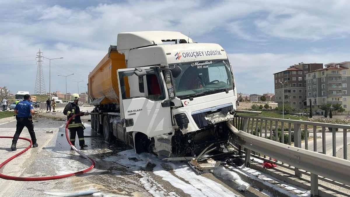 Kaza, Antakya çevre yolu Günyazı Mahallesi mevkisinde yaşandı. Sürücüsünün direksiyon hakimiyetini kaybettiği Oruçbey Lojistik’e ait Man marka hafriyat kamyonu, orta refüjü aşarak karşı şeride geçti. Kamyon, orta refüjdeki elektrik direğini de devirip, kenar bariyerlerine çarparak uçmaya ramak kala durdu. Bölgeye kısa sürede sağlık, 112 ve polis ekibi sevk edildi. İtfaiye ekipleri yaralı sürücüyü araçtan çıkararak sağlık ekiplerine teslim etti. Yaralı sürücü, olay yerindeki müdahalenin ardından hastaneye sevk edildi. İtfaiye ekipleri de motor kısmında yangın çıkan araca müdahale etti. Aracın şerit değiştirdiği esnada karşı yönden araç gelmemesi muhtemel bir faciayı önledi. Polis ekipleri kazayla ilgili inceleme başlattı.