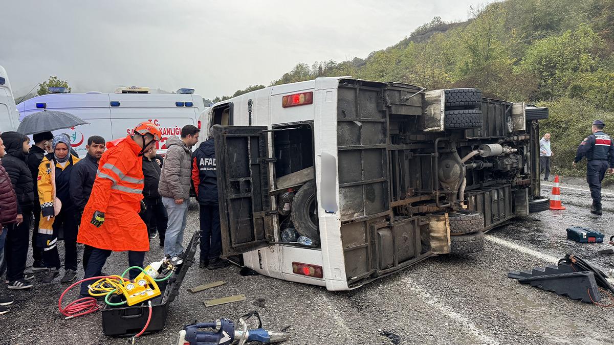 Bartın'dan Organize Sanayi Bölgesi'ne işçi taşıyan Birol E. (52) yönetimindeki servis aracı, Bartın-Karabük yolu Muratbey köyü mevkisinde sürücünün direksiyon hakimiyetini kaybetmesi sonucu devrildi. Haber verilmesi üzerine kaza yerine polis, itfaiye, sağlık, AFAD ve jandarma ekipleri sevk edildi.