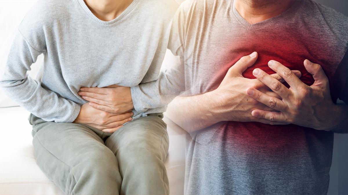 Mide ile kalp rahatsızlıklarını ayırt etmenin ayrıntılarından bahseden Doç. Dr. Oğuzhan Yücel, "Kalp ve mide bölgelerinin yakınlığı ve bu iki sistemin belirtilerinin kısmen örtüşmesi, ağrının kaynağını anlamayı zorlaştırabilir. Kalp krizi geçiren birinin yaşayabileceği bazı belirtiler (Mide bulantısı, hazımsızlık hissi veya göğüste yanma gibi şikâyetler) yüzünden kişi önce mideyle ilgili bir sorun olduğunu düşünebilir. Benzer şekilde, ciddi bir mide rahatsızlığı (Reflü veya ülser atağı) olan kişiler de göğüste hissettikleri yanma ve ağrı yüzünden panikle kalp krizi geçirdiklerini sanabilirler. Her iki durumda da belirtiler birbirine benzediği için yanlış yorumlama riski vardır.