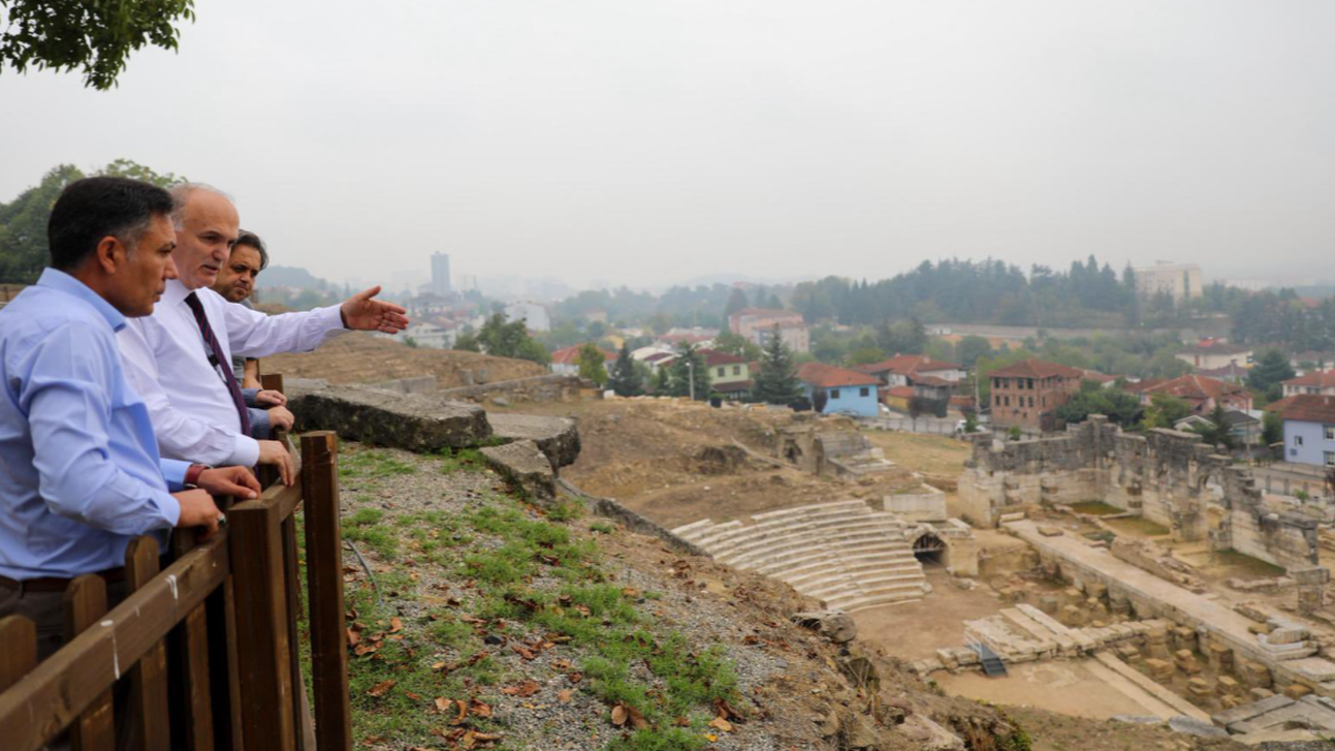 “Düzce’mizin binlerce yıllık tarih sahnesi Konuralp Antik Kenti kazı çalışmalarımızda tiyatro alanını birkaç gün içinde tamamlıyoruz.