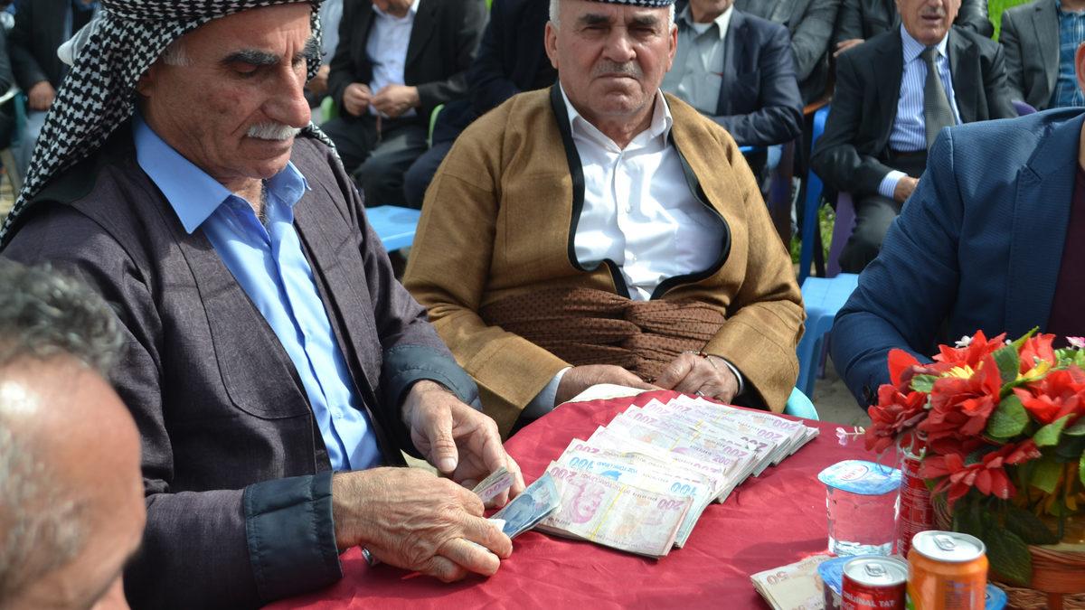 Düğünün takı töreninde ise davetliler birbiriyle yarıştı. Düğünde damada 120 bin TL para, geline ise 1 kilo altın takıldı. Düğüne katılan Jirki aşireti lideri Cemil Öter, gelenek ve göreneklerini sürdürdüklerini ifade ederek, "Düğünlerimizde bağışın rakamı olmaz. Herkes kendi bütçesine göre katkı amaçlı nakdi ya da takı takabiliyor. Gönülden gelen bu katkı da amaç genç çiftimize destek olmaktır. Gelenek ve göreneklerimizi Türkiye'nin dört bir yanında sürdürüyoruz" dedi. Düğün, renkli görüntülerle son buldu.