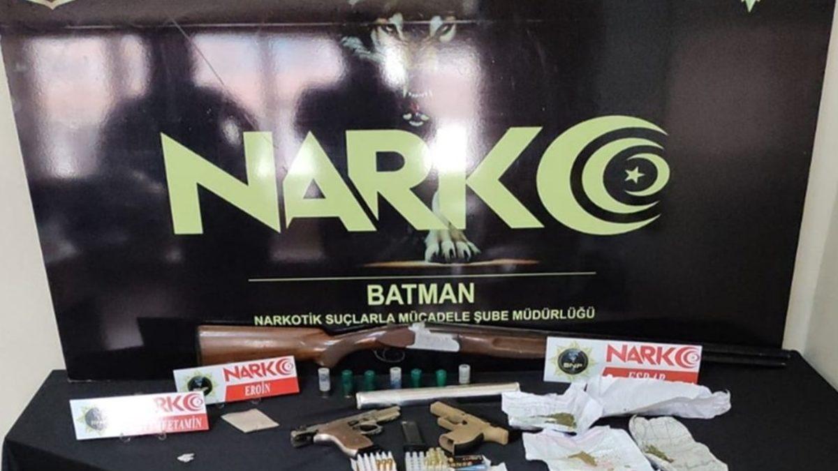 Batman Emniyet Müdürlüğü Narkotik Suçlarla Mücadele Şube Müdürlüğünce torbacılık yöntemi ile uyuşturucu madde ticareti yaparak toplum sağlığına ve toplumsal huzura zarar veren şahıslara yönelik çalışmaların aralıksız sürdüğü kaydedildi. Narkotik polisi, uyuşturucu madde ticaretine karıştıkları tespit edilen şüpheli şahıslara yönelik 8 adrese eşzamanlı operasyon düzenledi. Yapılan operasyonda, 11,85 gram eroin, 2,33 gram metamfetamin, 207,8 gram esrar, 0,19 gram sentetik kannabinoid, 1 sentetik ecza, 2 ruhsatsız tabanca, 18 tabanca fişeği, 1 ruhsatsız av tüfeği, 7 kartuş ele geçirildi. Konu ile ilgili gözaltına alınan 7 şahıstan 1’i çıkarıldığı mahkemece serbest bırakılırken, 6’sı ise tutuklanarak cezaevine gönderildi.