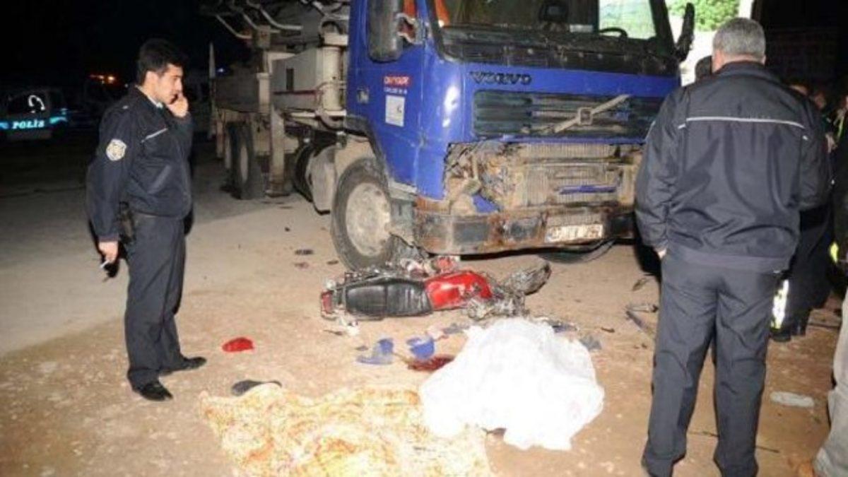Kaza, dün saat 22.30 sırasında Konyaaltı İlçesi, Çakırlar yolunda meydana geldi. Özkan Öz yönetimindeki 07 FSG 21 plakalı motosiklet, Çakırlar yönünden kent merkezine gelirken 46 yaşındaki Veli T. yönetimindeki 07 DV 292 plakalı beton mikseriyle çarpıştı. Motosikletin hurdaya döndüğü kazada Özkan Öz ile arkasında bulunan Umut Demirel kanlar içinde kaldı. Çevredekilerin haber vermesi üzerine sevk edilen 112 sağlık ekipleri, Özkan Öz ile Umut Demirel'in öldüğünü belirledi. Polis ekipleri kaza yerini şeritle kapatırken, yol güvenliği de alındı. Gözaltına alınan beton mikseri sürücüsü polis merkezine götürüldü.