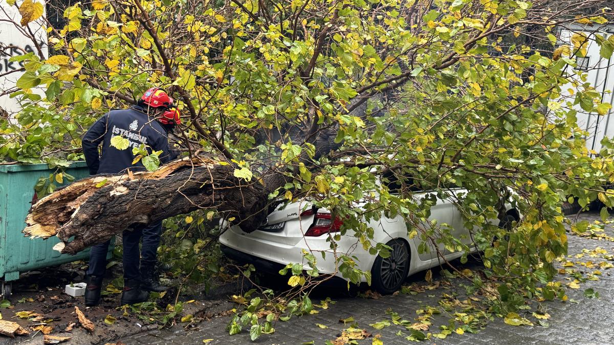 Keçeci Piri Mahallesi Okçular Sokak'ta yağışın ardından otomobilin üzerine ağaç devrildi.