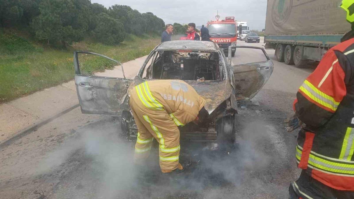 Biga-Bandırma Karayolu Marmara OSB yakınlarında çıkan araç yangını ekiplerin müdahalesiyle söndürüldü.