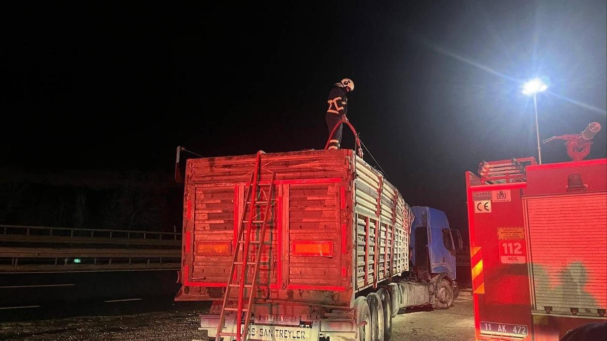 Olay, Bilecik-Eskişehir D-650 karayolu Kurtköy Köy mevkiinde meydana geldi. Alınan bilgilere göre Bilecik'ten Bozüyük ilçesine seyir halindeki İlker T. idaresindeki talaş yüklü 01 AHA 963 plakalı çekici/tırın dorse kısmında bir anda dumanlar çıkmaya başladı. Yangına itfaiye ekipleri anında müdahale ederken, araca sıçramadan söndürüldü. Meydana gelen yangında herhangi bir yaralanma olmazken, jandarma olayla ilgili inceleme başlattı.