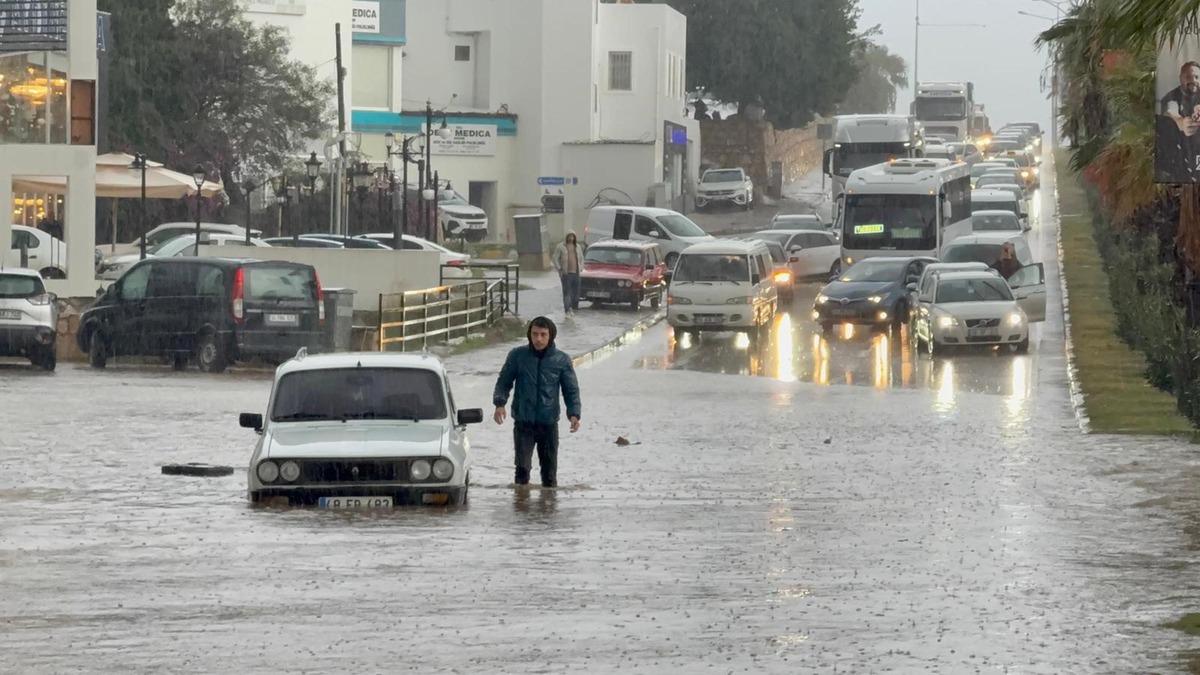 Bodrum-Turgutreis istikameti ve Gümbet istikametinde cadde ve sokaklar göle döndü. Bazı araçlar yolda mahsur kaldı. Belediye ekipleri yoldaki mazgalları açmak için çalışma başlattı.