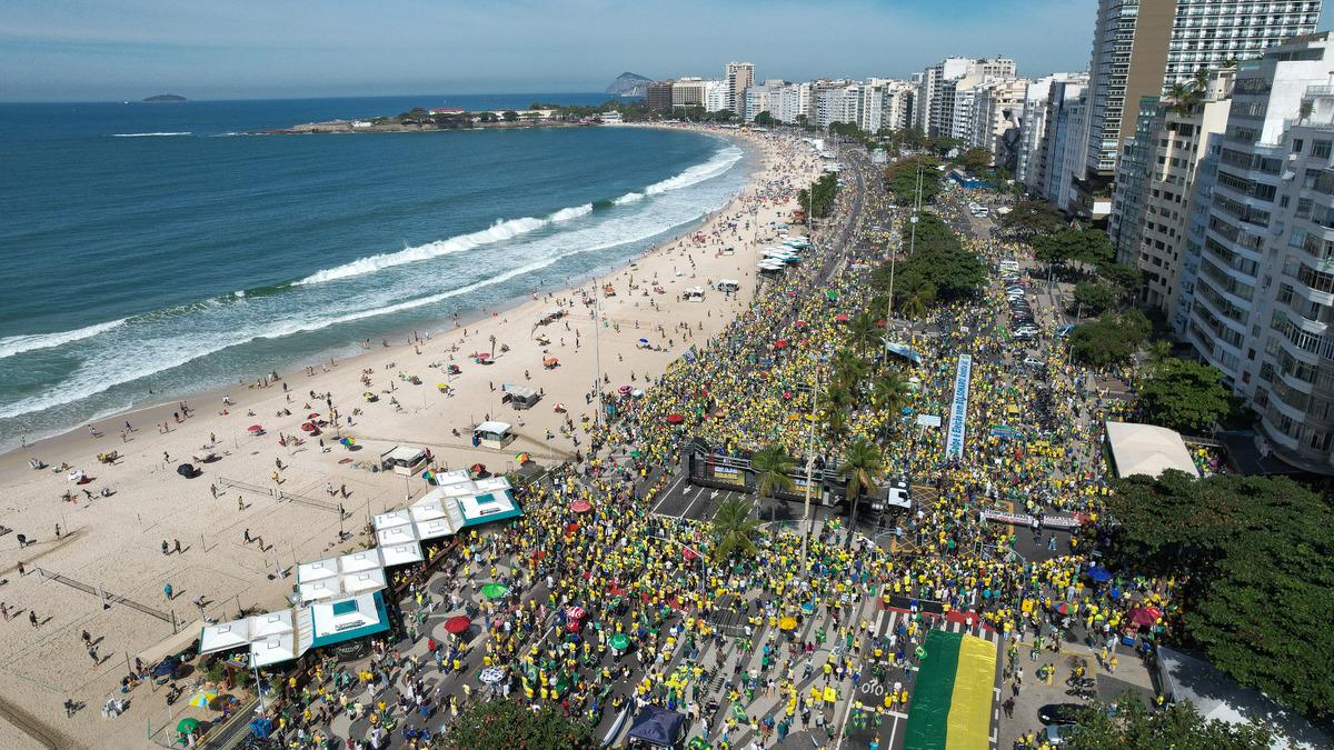 Ellerinde Brezilya bayrakları taşıyan kalabalık, "özgürlük", "adalet" ve "demokrasi" sloganları atarak Copacabana sahilinde yürüyüş yaptı. (AA)