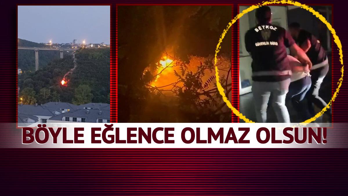 Öte yandan yangının çıkış anı cep telefonu kamerasıyla kaydedildi. Görüntülerde, işaret fişeği olduğu öğrenilen yanıcı maddenin ağaçlık alana düştüğü, ardından orman yangınının başladığı görülüyor.
