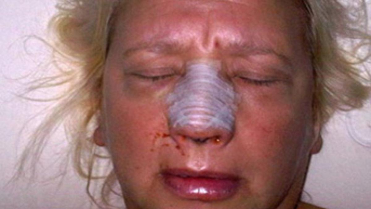 Doktorlar, hemen ameliyata alınan 51 yaşındaki kadının burnunu yeniden düzeltmek için sağ kulağından aldıkları kıkırdağı kullandılar.