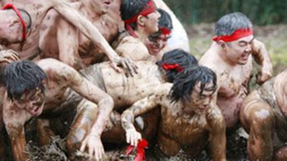 Tokyo Körfezi'nde yer alan Chiba ilinin 'Yotsukaido City' bölgesinde pirinç ekilen sulak alanda, 'Mud Festival' denilen 'Geleneksel Çamur Festivali'nde ilginç anlar yaşandı. Yeni yılda iyi hasat almak için şans getireceği inanışına dayanılan festivalde, Japonlar soyunarak çamura bulanıyor.