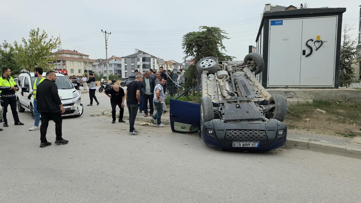 Furkan G. (28) yönetimindeki hafif ticari araç, Ertuğrulgazi Mahallesi Kozluca Yolu Sokak'ta Uğur T. (19) idaresindeki otomobille çarpıştı.