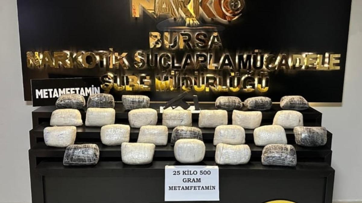 Operasyonda 25,5 kilogram sentetik uyuşturucu ile ruhsatsız tabanca ele geçirildi.