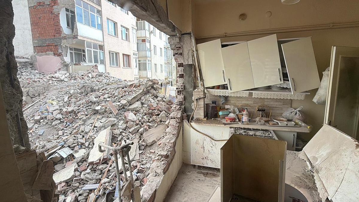 Dün çalışmalar sırasında bir binanın bitişiğinde bulunan iş yerinin duvarı ekiplerce yıkıldı. Bugün de aynı ekiplerin çalışması sırasında karşı cephede bulunan bir apartmanın 2'nci katındaki bir dairenin mutfak duvarı yıkıldı