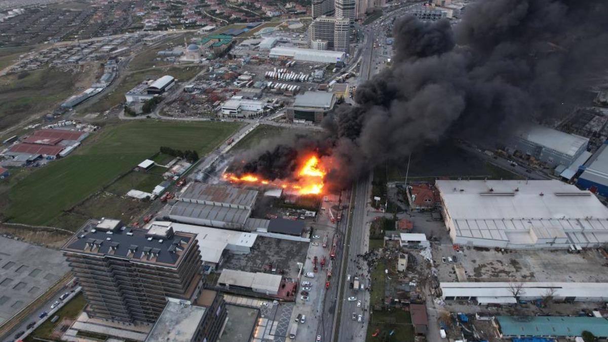 Polis ekipleri çevrede güvenlik önlemi alırken, itfaiye ekipleri de yangını söndürmek için çalışma başlattı. İtfaiye ekiplerinin müdahalesi devam ederken, alev alev yanan fabrika ve ekiplerin çalışması dronla havadan görüntülendi.