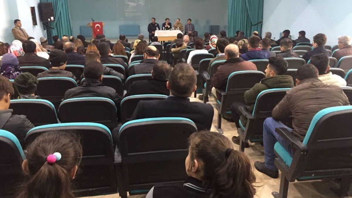 Çaldıran Yavuz Sultan Selim İlkokulunun konferans salonunda yapılan toplantı, saygı duruşunda bulunularak İstiklal Marşı’nın okunmasıyla başladı. İlçe Emniyet Müdürü Korkmaz Polat, İlçe Jandarma Komutanı Jandarma Binbaşı Mehmet Diki, İlçe Milli Eğitim Müdürü Ömer Aslan, kurum müdürleri, veliler ve mahalle muhtarlarının katıldığı toplantıda konuşan Kaymakam Dundar, 2017-2018 eğitim öğretim yılı 1. döneminde kaymakamlık ve belediye başkanlığı tarafından yapılan çalışmalar ve alınan önlemler hakkında bilgiler verdi. 2017-2018 eğitim öğretim yılının 2. döneminde alınacak önlemlere de değinen Durdar, okul-veli işbirliğinin önemini anlattı. Okul müdürlerine velilerin öğrencileri konusunda daha fazla bilgiye sahip olmaları konusunda uyaran Dundar, öğrencilerinin yeteneklerinin de göz önünde bulundurulması için gereken hassasiyetin gösterilmesini istedi. Dundar, “Eğitim öncelikle ailede başlar. Öğrencilere kazandırılacak davranışlarda ve çocuğun geleceğinin belirlenmesinde aile büyük önem taşır. Emniyet ve jandarma kolluk kuvvetleri ile okul müdürlükleri, alınacak tedbirlerle alakalı sürekli işbirliği içinde bulunmaları gerekir” dedi.
