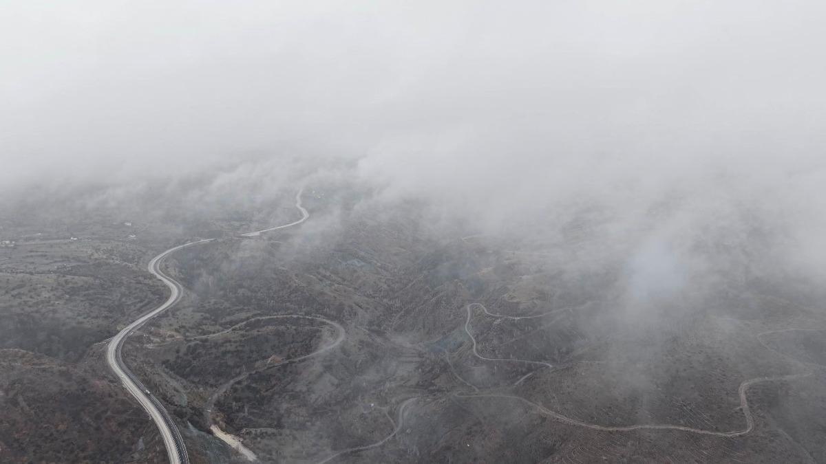 Çankırı’da hava sıcaklığının düşmesinin ardından yüksek rakımlı bölgelerde sis etkili oldu. Dağları kaplayan sis bulutları havadan görüntülendi.