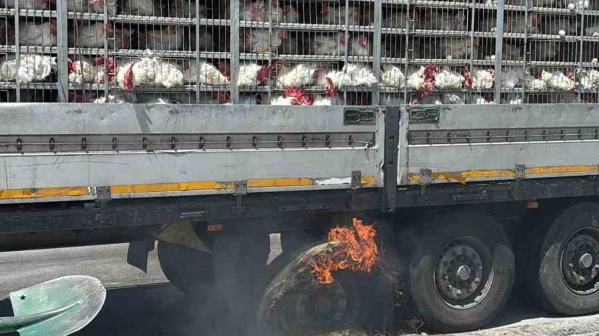 Edinilen bilgiye göre, Karapınar Konya Kara yolu Merdivenli mevkiinde seyir halindeki canlı tavuk dolu tırın dorse lastiklerinde henüz bilinmeyen nedenle yangın çıktı. Yangını fark eden diğer sürücüler, tır şoförünü uyardı. Tırı yol kenarına çeken sürücü, çevredeki vatandaşların da yardımıyla araçtaki yangını büyümeden kontrol altına aldı. Yangında tavuklar zarar görmezken, lastikten çıkan alevlerin sıçradığı yol kenarındaki kuru otlar ve ağaçlar tutuştu. Çevreye yayılan yangın, ihbar üzerine gelen itfaiye ekiplerinin müdahalesiyle tamamen söndürüldü.