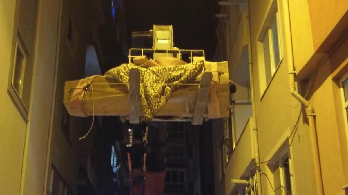 Edirne'de günler sonra evinde cansız bedeni bulunan ve yaklaşık 165 kiloya ulaşan kişinin cesedi evden vinçle çıkarıldı.