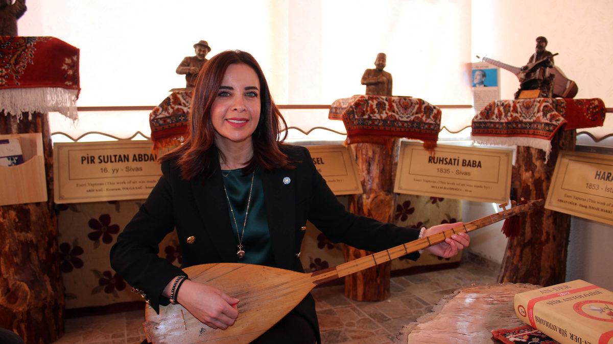 Hakan KALELİ/SİVAS, (DHA) - DÜNYACA ünlü halk ozanı Aşık Veysel Şatıroğlu’nun torunu Çiğdem Özer (41), Sivas'taki Ozanlar Müzesi'ni ziyaret ederek, dedesine ait sazı çaldı.