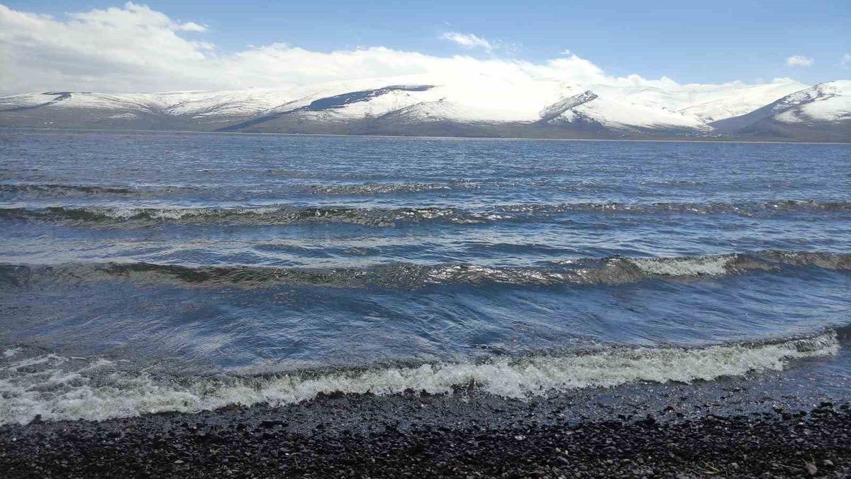 Deniz seviyesinden bin 959 metre yükseklikteki Çıldır Gölü’nde kış mevsiminde oluşan yaklaşık bir metre kalınlığındaki buz tabakası, sağanak yağışlar ve hava sıcaklığının artmasıyla çözüldü.
