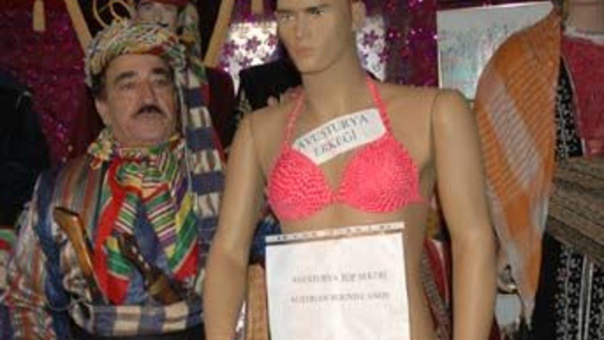 Federasyon Başkanı Niyazi Çapa, peruklu, bikinili ve üzerinde "Avusturya Erkeği" ve "Avusturya Top Şekeri" yazan maketi, konağında sergilemeye başladı.