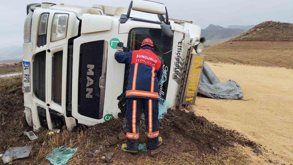 Kaza, Sungurlu ilçesi Tuğcu köyü yolunda meydana geldi. Edinilen bilgilere göre, Kızılırmak istikametinde seyir halinde olan İbrahim İ. idaresindeki tır, yağışlı havanın etkisiyle kayganlaşan yolda virajı alamayarak devrildi. Kazada tır sürücüsü yaralandı. Kazayı gören vatandaşların ihbarı üzerine olay yerine jandarma, itfaiye ve sağlık ekipleri sevk edildi. Kısa sürede olay yerine ulaşan Sungurlu Belediyesi itfaiye ekiplerinin müdahalesiyle tırdan çıkartılan sürücü, sağlık ekiplerine teslim edildi. İlk müdahalesi olay yerinde yapılan yaralı Sungurlu Devlet Hastanesi’ne kaldırıldı. Jandarma ekipleri kazayla ilgili inceleme başlattı.