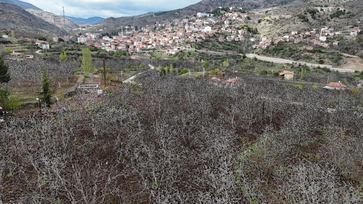 Zirai dondan dolayı büyük ölçüde verim kaybı yaşanan ceviz ağaçları, dronla havadan görüntülendi.