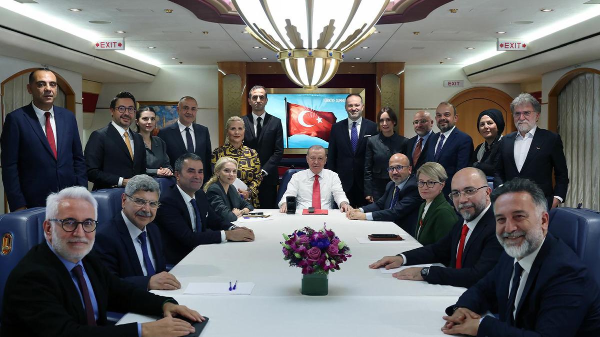 Cumhurbaşkanı Erdoğan: Ben özellikle sizlere teşekkür ediyorum. Beyaz Saray'da Sayın Trump ve heyeti tarafından gayet iyi ağırlandık. Washington'dan memnun ayrılıyoruz. Atılan çamurlarla kirletilemeyecek kadar güzel bir ziyaretti. Sayın Başkan’la samimi, yapıcı ve verimli bir atmosferde görüşmelerimizi gerçekleştirdik. Zaten Sayın Trump ile ilişkimiz, malum geçmişten bu yana çok iyi. İlk döneminde farklı bir diyaloğumuz vardı, o devam ediyor. Bu durum inanıyorum ki; Türk-Amerikan ilişkilerine de olumlu yansıyacak. Bugüne kadar, dostlarımızla konuşurken açık, net ve ilkeli bir dil kullandık ve kullanıyoruz. Sayın Trump da açık konuşmayı seven, düşüncelerini perdesiz dillendiren bir siyasetçi. Amerika ile ilişkilerimizi, karşılıklı saygı temelinde ilerletiyoruz. Tek görüşmeyle her meseleyi halletmek, tabii ki mümkün değil. Fakat bu temas, birçok konuda anlamlı ilerleme sağlamamıza yol açtı. İki ülkenin ticaret hacmi de potansiyeli de ortada. 100 milyar dolarlık ikili ticaret hedefimiz var. Liderler olarak bunu harekete geçirecek politik iradeye sahibiz. Görüşmemizde ticaret ve yatırımların yanı sıra Gazze'deki insani felaketi ve Suriye konusunu da ele aldık. Sayın Trump'ın küresel barış vizyonunu ben de destekliyorum. Akan kanın durması noktasında iki tarafta da bir mutabakat söz konusu. İnşallah bu konuda da kısa sürede bir açılım sağlarız. Yemekte de bütün bu konuları her yönüyle ele alma fırsatını bulduk. Gerek şahsım, gerek bakan arkadaşlarımla birlikte bunları değerlendirdik.
