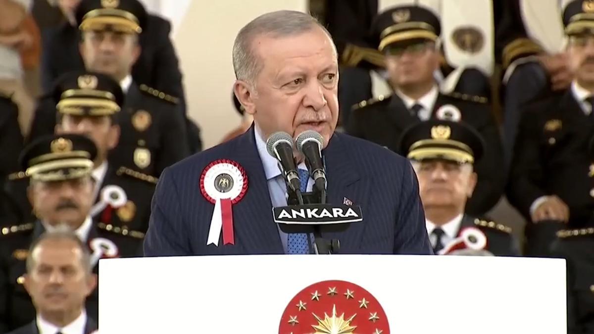 Cumhurbaşkanı Erdoğan, Polis Akademisi Mezuniyet Töreni'nde konuştu. CHP lideri Özgür Özel, Manavgat Belediyesi'ndeki rüşvet görüntüleriyle ilgili 'kumpas' çıkışında bulunmuştu. Erdoğan bu sözlere yanıt vererek "Madem 32 saatlik görüntü var, versene mahkemeye" dedi.
