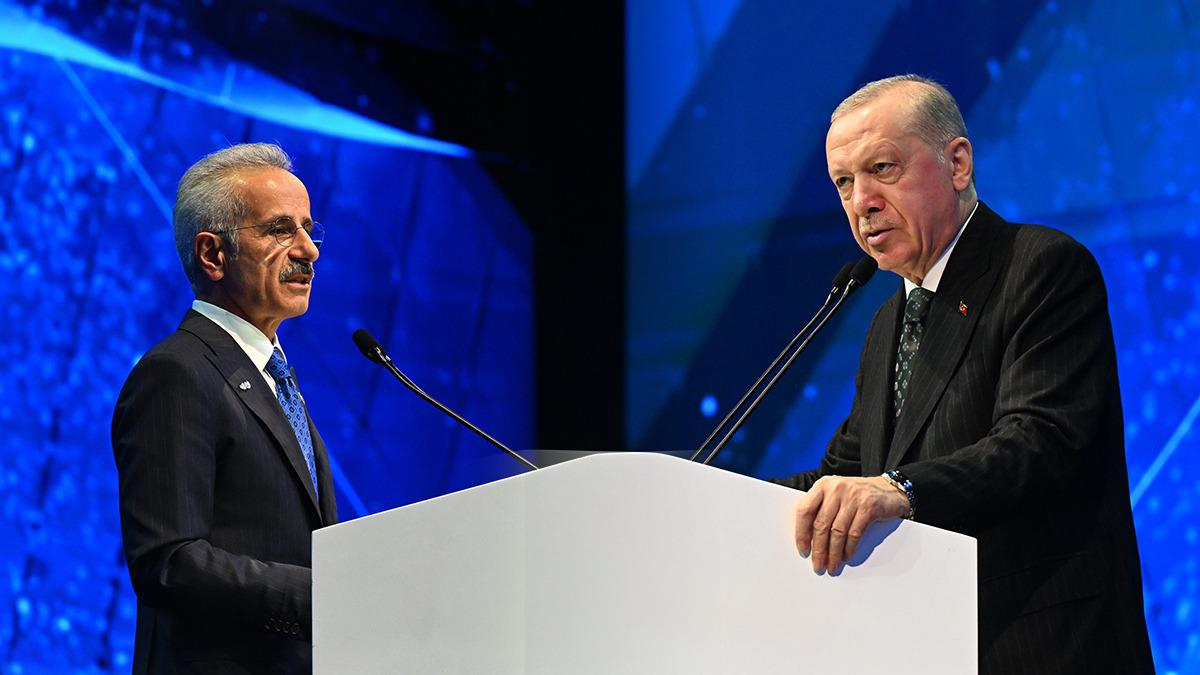 11 bin 668 kilometre uzunluğundaki demiryollarını komple yenilediklerini, hava yolunu halkın yolu haline dönüştürdüklerini de vurgulayan Erdoğan, “Havayollarında 26’dan devraldığımız havalimanı sayımızı 58’e ulaştırdık. Yurt dışı uçuş noktası, 60’tan aldık. Toplam 353’e getirdik. İstanbul Havalimanımız Türkiye'nin vizyon projesi olarak göz dolduruyor. Yılın ilk 5 ayında 32 milyona yaklaşan yolcu sayısıyla kendi rekorunu kırdı. Bir diğer çarpıcı rakam şudur, 2002 yılında ülkemizdeki toplam araç sayısı 8,5 milyon civarında iken şehirler arasındaki ortalama hızımız saatte 40 kilometreydi. Bugün ülkemizdeki araç sayısı 32 milyonu geçmesine rağmen ortalama seyahat hızımız 90 kilometreye çıkmış durumda. Yani ulaştırmaya dair her başlıkta kelimenin tam manasıyla destan yazdık.” şeklinde konuştu.