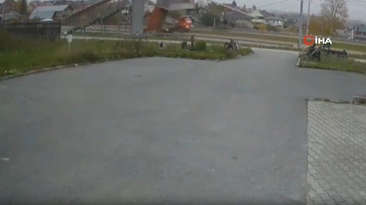 Rusya’nın Ekaterinburg şehrinin Çelyabinsk yönündeki yan yolda bulunan bir şantiyeye yük boşaltan kamyon şoförü, damperi kapatmayı unuttu. Ana yola kadar bu şekilde gelen ve hızlanan sürücü, üst geçidi açık damperle devirdi. Kamyonun ön kısmı tamamen ezilirken, olay yerine çok sayıda kurtarma ekibi ve ambulans sevk edildi.