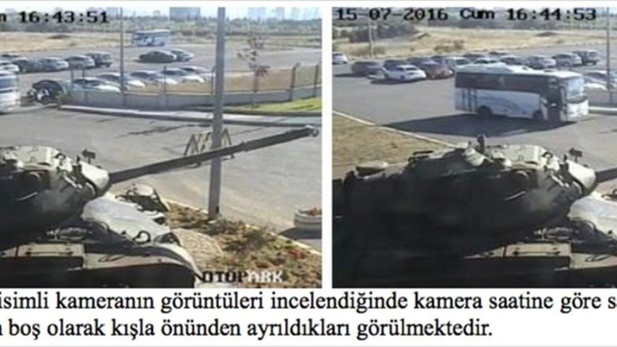 - Kışlada hareketlenme saat 20.15'te başladı Kamera görüntülerine göre darbe girişiminin yaşandığı 15 Temmuz günü gerçekleşen hazırlıklarla ilgili yapılanlar, saatine göre şöyle sıralandı: "Saat 10.40; Mehmet Nail Yiğit komutanlık katından aşağıya indi, makam aracıyla ayrıldı. 10.51; Uzay Şahin, Murat Yanık ve Mehmet Murat Çelebioğlu komutanlık katına geldi, Mehmet Nail Yiğit'in makam odasının yanındaki odaya girdi. 10.57; aynı kişiler komutanlık katından aşağıya indi, komutanlık binasının yan tarafında bulunan kamelyaya yöneldi. 11.04; iki asker kamelya yönünde yürüdü. Yaklaşık bir dakika sonra Mehmet Nail Yiğit'in makam aracı görüntüye girdi, Yiğit kamelyaya doğru yürüdü. (Bu toplantının yapıldığı alanı gösteren kamera görüntüsü bulunmamaktadır. Ancak toplantının 13.28'e kadar devam ettiği değerlendirilmiştir.) 14.06; Mehmet Nail Yiğit komutanlık katına çıktı ve makam odasına girdi. 15.15-15.27; Yiğit makamından aşağı kata indi, makamına geri geldi. 16.08; Albay Yusuf Sarı ve Yarbay Kadir Yıldız makam odalarına girdi. 16.18; Yarbay Osman Akkaya, Yarbay Fatih Sönmez, Yarbay Serbülent Eken, Binbaşı Ahmet Baykal ve Yüzbaşı Özkan Özgenç, komutanlık makam odasına girdi. 16.38; toplantı bitti ve toplantıya katılanlar komutanlık katından ayrıldı. 16.39; Mehmet Nail Yiğit komutanlık makamından ayrıldı, makam aracına yürüdü.