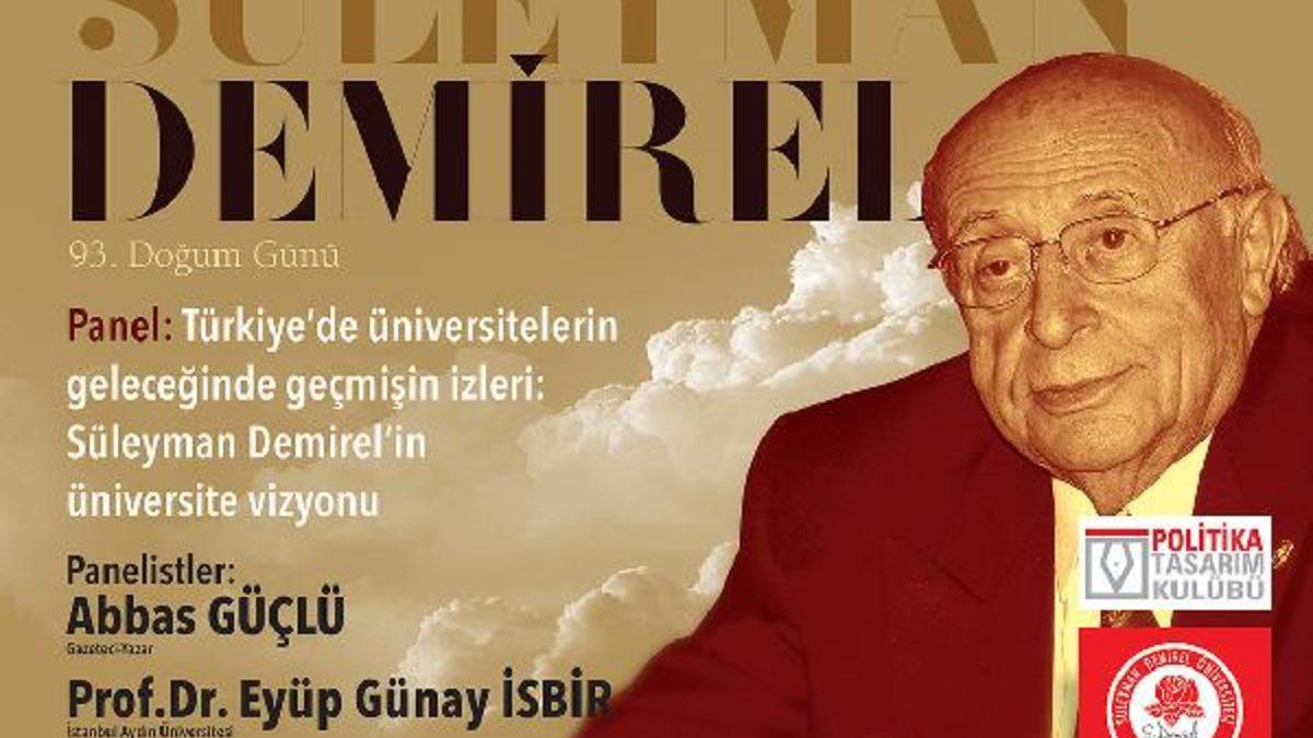 Dokuzuncu Cumhurbaşkanı merhum Süleyman Demirel, 93'üncü doğum günü dolayısıyla Süleyman Demirel Üniversitesi'nde anıldı. Prof. Dr. M. Lütfü Çakmakçı Kültür Merkezi'nde gerçekleştirilen "Türkiye'de Üniversitelerin Geleceğinde Geçmişin İzleri: Süleyman Demirel'in Üniversite Vizyonu" adlı panelde İstanbul Aydın Üniversitesi öğretim üyesi Prof. Dr. Eyüp Günay İsbir ile gazeteci yazar Abbas Güçlü, Süleyman Demirel'i anlattı. Törende İstiklal Marşı okundu ve daha sonra müzik dinletisi yapıldı.