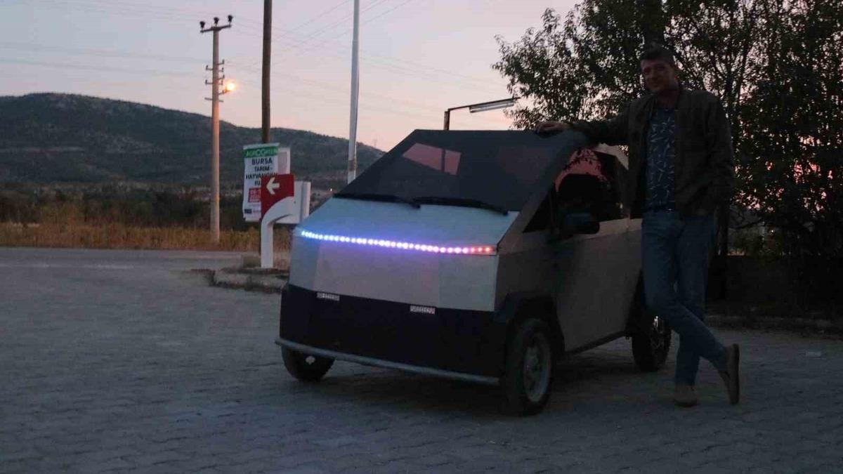 Denizli’de yaşayan Rüştü Bal, Tesla’nın dünyaca ünlü modeli Cybertruck’tan ilham alarak kendi elektrikli pick-up aracını yaptı. Tamamını 75 bin TL bütçeyle ve hurda malzemeleri geri dönüştürerek, kendi evinin bahçesinde geliştiren Bal, Elon Musk’a adeta "yerli rakip" çıktı.