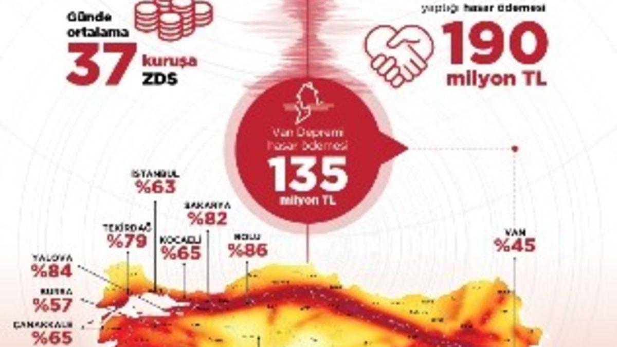 Öte yandan bugün Türkiye’de her iki konuttan biri Zorunlu Deprem Sigortası ile güvence altında olduğu bildirildi. Sigortalılık oranı en yüksek iller arasında özellikle deprem geçirmiş iller yer alıyor. Yalova, Sakarya ve Bolu’da sigortalılık oranları yüzde 80’i aşarken, İstanbul’da ise yüzde 63’e ulaşmış durumda.