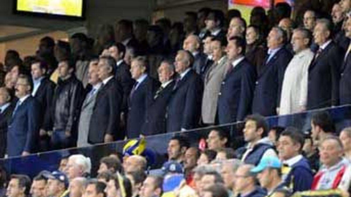 Derbi sırasında Fenerbahçeli Mahmut Uslu ile Galatasaraylı Haldun Üstünel arasındaki kavga Protokol'ü birbirine kattı. Başkan Aziz Yıldırım da olaylara karışınca gerginlik tavan yaptı.