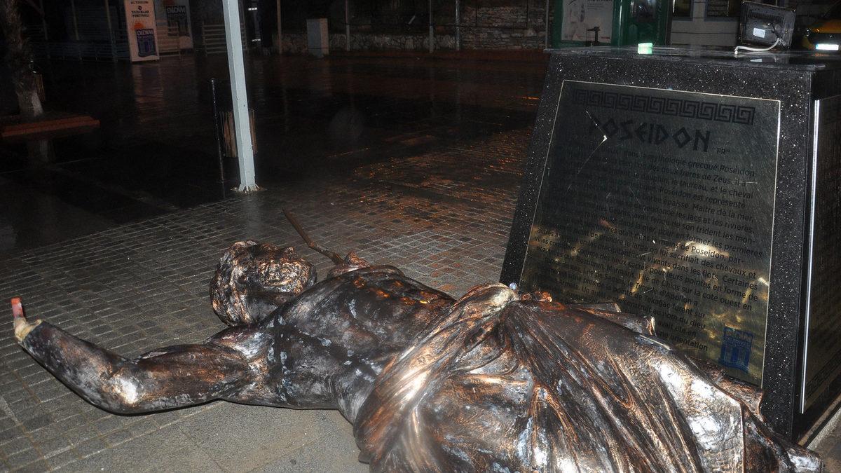 Ediz VERDİOĞLU/DİDİM (Aydın), (DHA)- AYDIN'ın Didim ilçesinde, dün akşam etkili olan fırtınada Altınkum Yalı Caddesi’ndeki Poseidon heykeli devrildi.