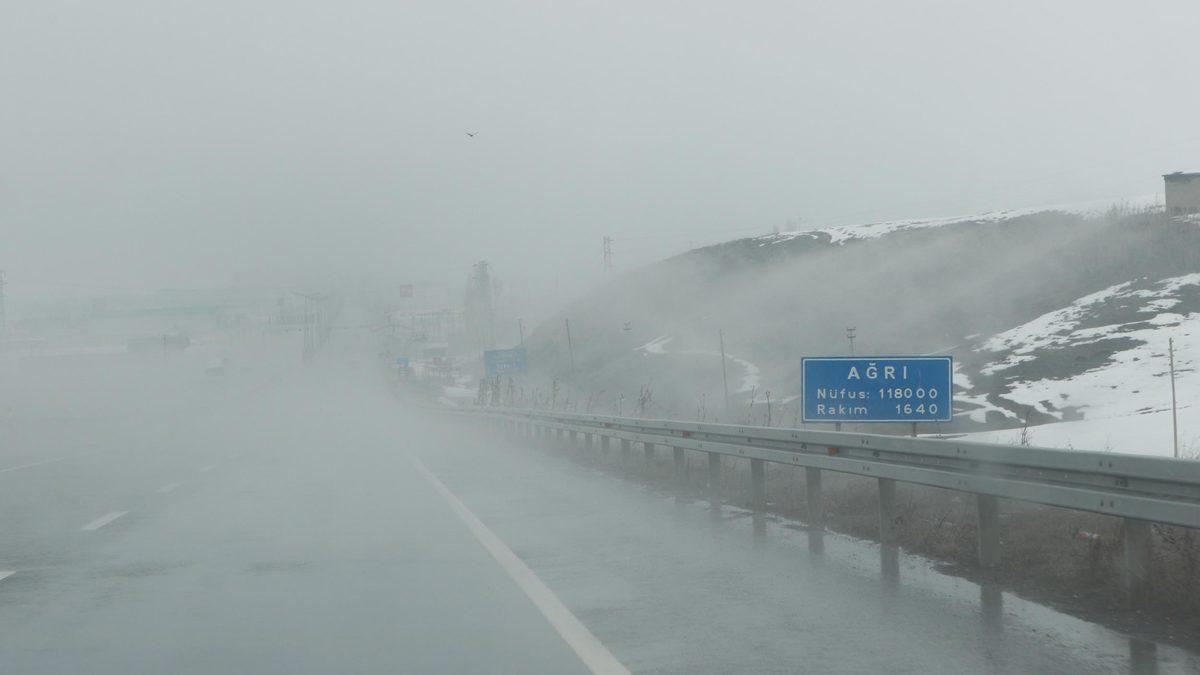 Doğubayazıt ilçesinde sabah saatlerinde başlayan kar yağışı sonrası sis etkili oldu. İlçe merkezi ve çevre yolunda görüş mesafesinin 5 metreye kadar düştüğü ilçede, trafikte sürücüler zor anlar yaşadı, kontrollü olarak araçlarıyla ilerledi.