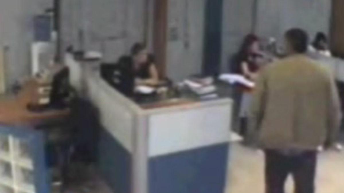 Banka çevresinde dolaşırken görülen şüphelinin daha sonra bankaya girdiği an ise kameralara işte böyle yansıdı.