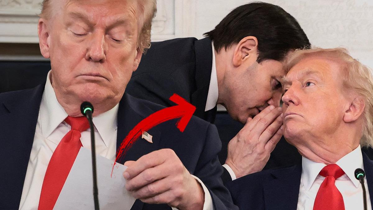 Rubio, basın toplantısı sırasından Trump'ın yanına giderek kulağına fısıldadı ve bir not teslim etti.