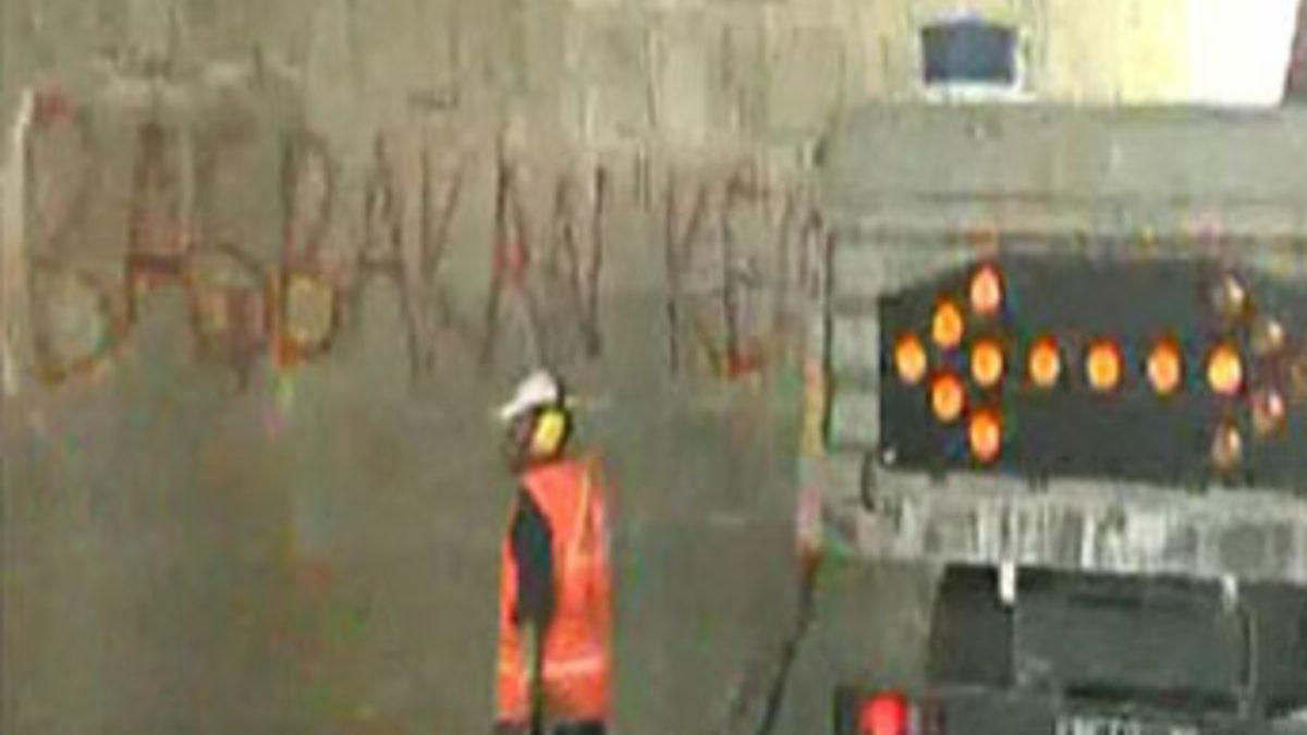 Yazı Ankara Büyükşehir Belediyesi'ni harekete geçirdi. Kent Estetiği Başkanlığı elemanları içinde boyayı temizleyecek kimyasal bir maddenin bulunduğu tazyikli suyla duvarı yıkadı.
