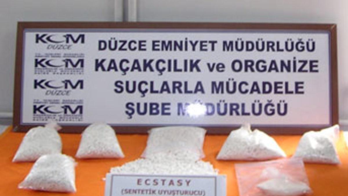 DÜZCE (İHA) - Düzce'de emniyet ekiplerinin yaptığı operasyonda piyasa değeri yaklaşık 130 bin YTL olan 15 bin 682 adet sentetik uyuşturucu hap ele geçirildi. Olayla ilgili 5 kişi gözaltına alındı.