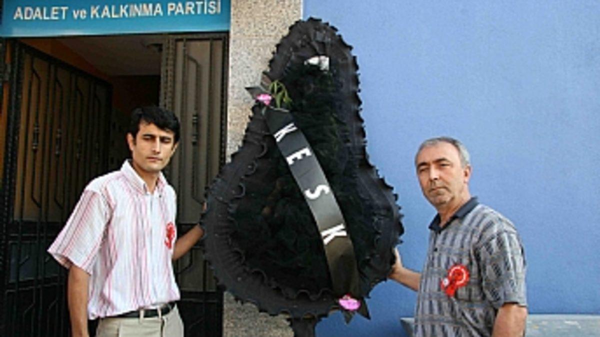 DÜZCE (İHA) - Kamu Emekçileri Sendikaları Konfederasyonu'na (KESK) bağlı Eğitim-Sen Düzce Şubesi üyeleri, memura yapılan ek ödemeleri yetersiz bularak, AK Parti İl binası önüne siyah çelenk bıraktı.