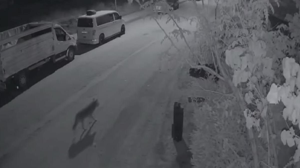 Kısa bir süre mahallede gezen kurt daha sonra gözden kayboldu. O anlar ise güvenlik kamerasına anbean yansıdı.