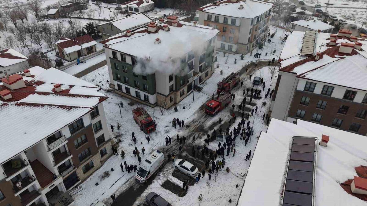 Olay, Yurtbaşı beldesi sosyal konutlarda meydana geldi. Edinilen bilgiye göre 4 katlı binanın 3. katında henüz bilinmeyen bir nedenle yangın çıktı. Yangın kısa büyüdü ve bina dumanlar arasında kaldı. Yangında, 11 kişi dumandan etkilenirken bina sakinleri korku ve panik halinde kendini dışarıya attı. Haber verilmesi üzerine olay yerine çok sayıda, itfaiye, sağlık, UMKE, polis ve jandarma ekipleri sevk edildi. Aralarında çocuk ve bebeklerin de olduğu dumandan etkilenen 11 kişi olay yerinde yapılan ilk müdahalelerin ardından ambulanslarla kentteki hastanelere kaldırılarak tedavi altına alındı. Yangın, itfaiye ekipleri tarafından kontrol altına alınarak söndürüldü.
