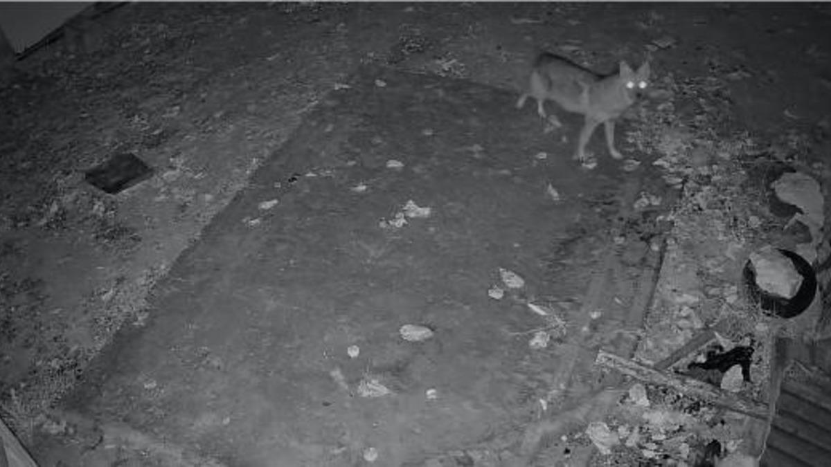 Elazığ’da evin etrafında yiyecek arayan çakal kamerada